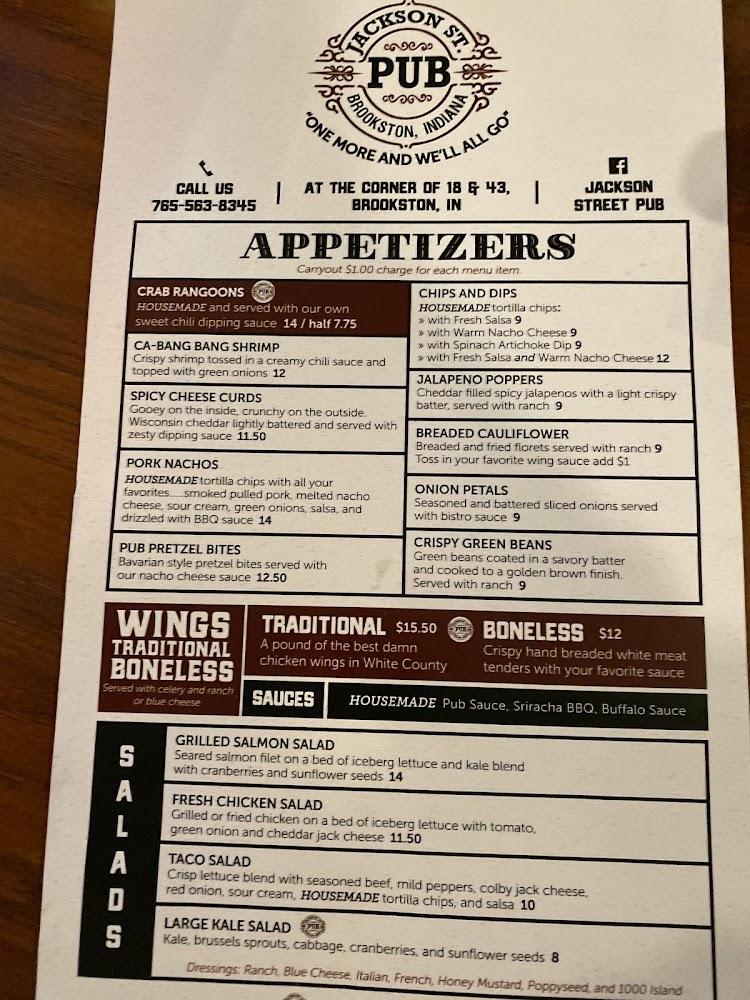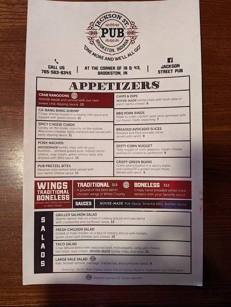 Welcome to Jackson St Pub, your go-to destination in Brookston for delicious American cuisine and a vibrant bar experience. Located at 121 W 3rd St, we offer a diverse menu featuring local specialties, mouthwatering sandwiches, and excellent cocktails. Enjoy a laid-back atmosphere perfect for lunch, dinner, or a casual night out with friends. Our amenities include fast service, takeout, and delivery options, along with accessible seating and parking. Whether you're catching a game or enjoying a solo meal, Jackson St Pub promises a delightful experience with an extensive selection of beers and spirits. Join us today!